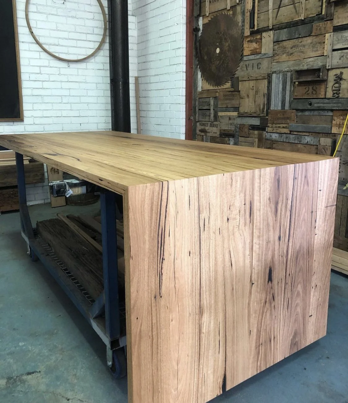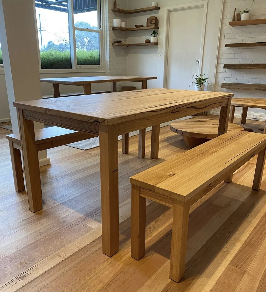 Recycled timber bench tops, dining and coffee tables, bench seats, vanities, mantle pieces and stump stools